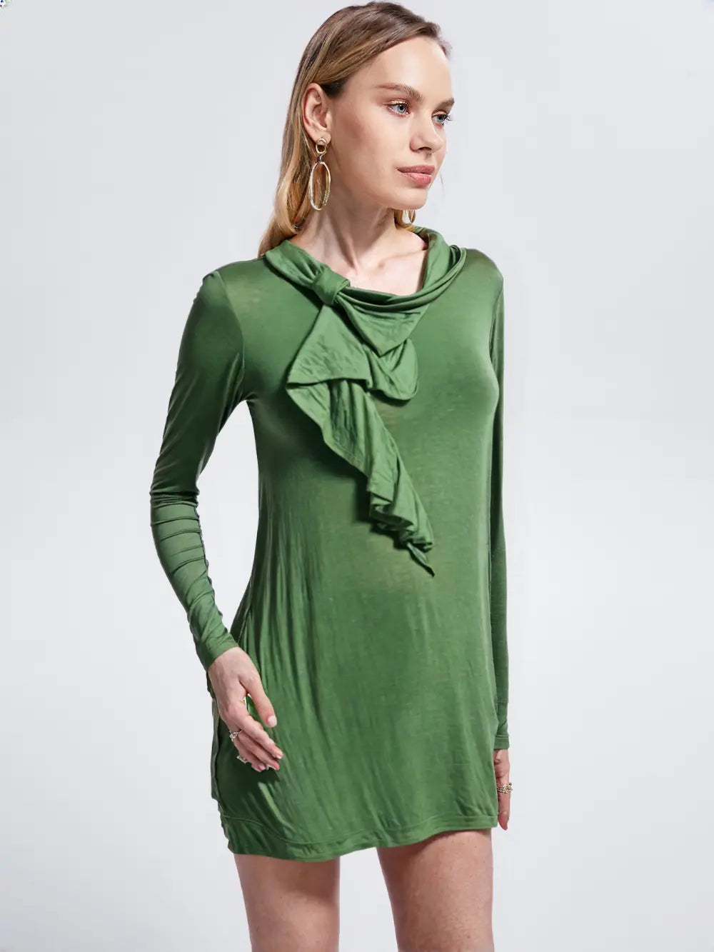 Green Ruffle Neck Long Sleeve Women’s Western Top